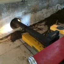 Прокол длинной 8 метров под трубу 110 мм, расширение 140мм, управляемое бурение с уклоном, выполнялся с использованием мини-ГНБ установки УПК-30, которая без проблем размещается даже в самых тесных помещениях. Сварили трубу встык. Произвели алмазное бурение д160мм в блоке.